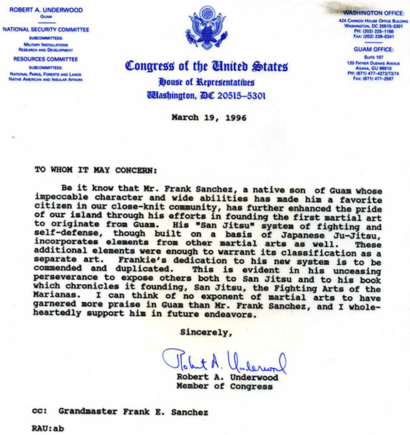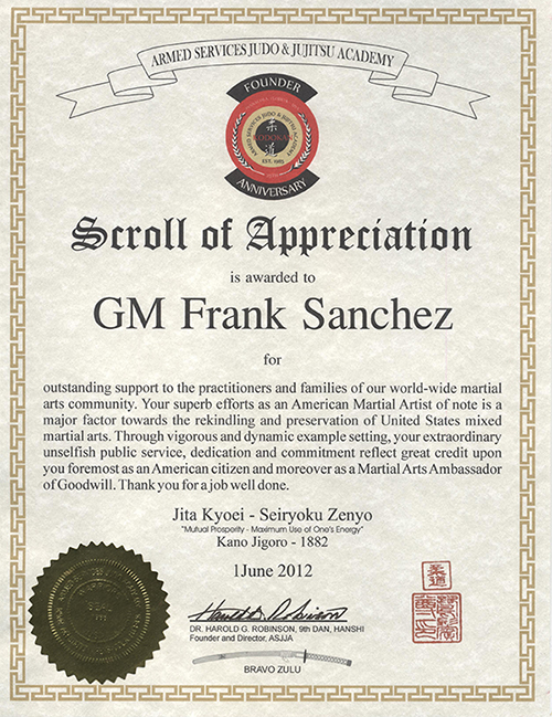 2012 Letter of Appreciation from Armed Forces Judo & JuJitsu Academy
