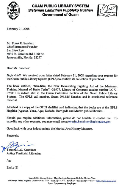 2008 Letter from Governor Felix Camacho, the Honorable Governor of Guam