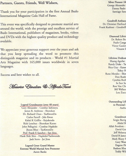 Hawaii Martial Arts International Society 2003 Martial Arts Legend Award